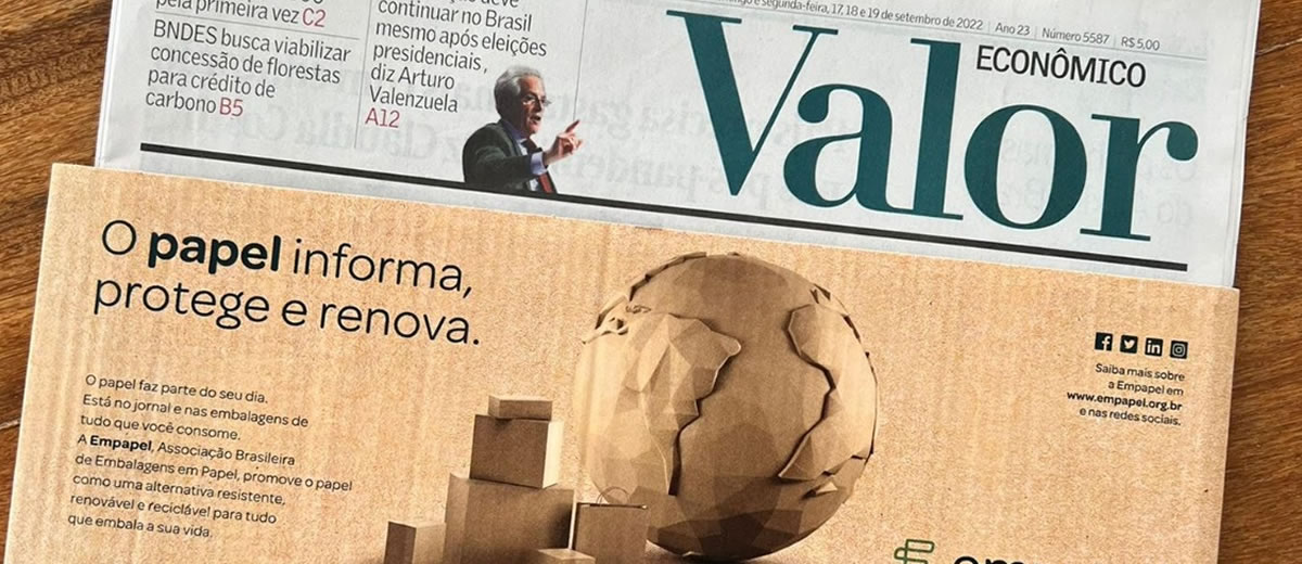 A premissa “nossas escolhas ajudam a construir o futuro” marcou as mensagens do início da segunda fase da campanha de valorização da Empapel, que se encerrou em novembro de 2022. Além de cinta e publicação material no Valor Econômico e revistas do setor, a iniciativa incluiu outdoor, relógios de rua e mídias digitais.